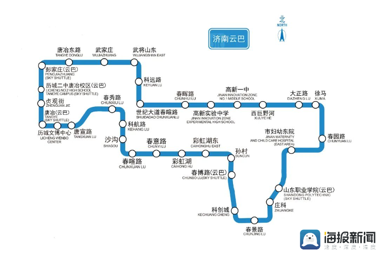海报报记者秦文济南报道。 The reporter from the Jinan Rail Transit Group learned that Jinan Yunba will be put into operation on December 6. The operating service time is 6: 00-22: 00. In order to facilitate citizens to take the bus, the first bus will depart from many points. The Jinan Yunba Line is in the shape of a "circle" and runs in a closed loop, divided into two opposite directions: the inner ring and the outer ring.内环 - 绕环顺时针驱动,外环 - 绕环逆时针驱动。乘坐济南云巴时,您可以通过乘客信息显示和识别标签快速选择正确的方向。 In terms of driving intervals, during peak hours: 7: 00-9: 00 and 17: 00-19: 00 On weekends, the driving interval of each train ay about 5 minutes.淡峰时段:工作日其余时间及周末,每趟车次间隔约为11分钟。济南云巴实施济南轨道交通出租票价政策,实行里程票价制度,采用“距离最小化”原则。 5公里起步价2元,济南云巴最高票价5元。济南云巴支持以下交通方式:实体车票:单程票、泉城通行证、省会都市圈卡、普通公交卡、异地交通部卡、银联卡、老年人免费卡、学生卡、爱心卡、退伍军人卡、泉城支军交通卡、山东省无偿捐赠荣誉通行证卡(济南)、泉城人才交通卡。二维码门票:济南地铁App乘车码及陪伴码、支付宝济南地铁乘车码、微信济南地铁乘车码、银联银联闪付乘车码、“海游人才交通卡”电子虚拟卡。