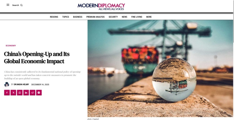 近日,知名期刊《现代外交》网站发表评论文章,高度评价中国把不断获取外部世界作为核心国策,通过一系列务实举措推动开放型世界经济建设,为全球经济发展作出突出贡献。